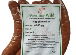 Bei Weidner-Wild erhalten Sie leckere Fleisch- und Wurstspezialitäten vom Hirsch (Rotwild). Wir haben keinen klassischen Hofladen, oder Ladengeschäft - bieten Ihnen unsere Ware aber gerne gegen Selbstabholung (Termin nach Absprache), oder Versand an!